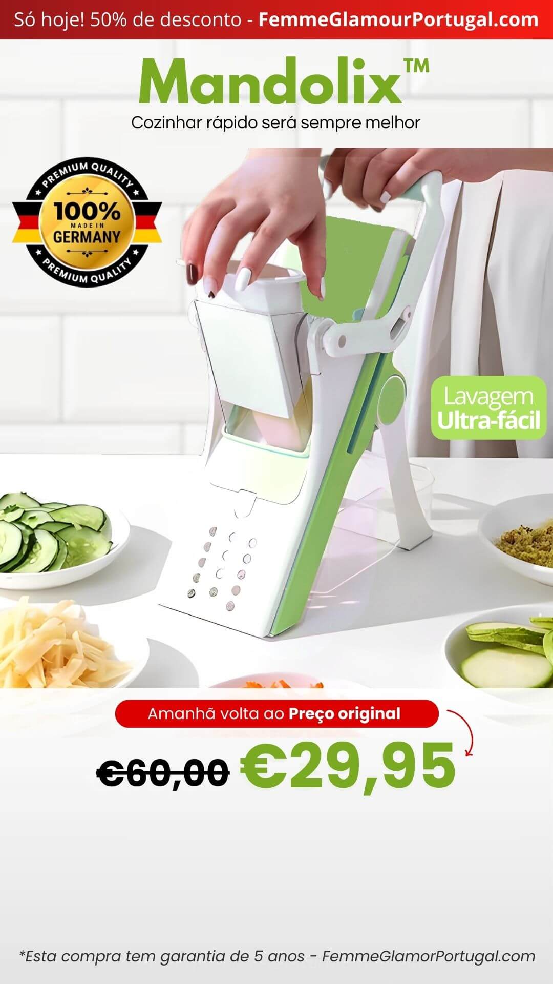 Mandolix é a única mandolina vertical do mercado que permite cortar batatas e verduras 4 vezes mais rápido.